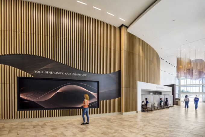 We recently completed a performing arts theater in which we anticipated donor interest in AV upgrades and built-in infrastructure early, allowing a donor to fund enhancements without costly redesign. In recognition of their donation, we created a custom wood wall featuring removable panels inscribed with donor names; this elegant, expandable design seamlessly complements the building’s aesthetic. Typography and signage were unified across the facility, reinforcing a thoughtful, non-intrusive recognition strategy. Involving the organization’s development lead in the design process was key to aligning fundraising goals with architectural opportunities.