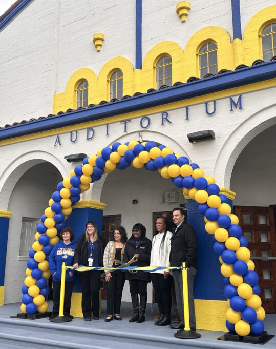 Grant Union High School in the Twin Rivers Unified School District celebrated the completion of a significant renovation of its historic auditorium. The school, in the Del Paso Heights section of Sacramento, was built in 1935, and the mission-style, cast-concrete auditorium dates to the original construction of the campus. The 667-seat auditorium is considered a central part of the school and the community’s history. HMC Architects designed and managed the renovation, with key collaboration from school and district staff, the music department, and the alumni association.