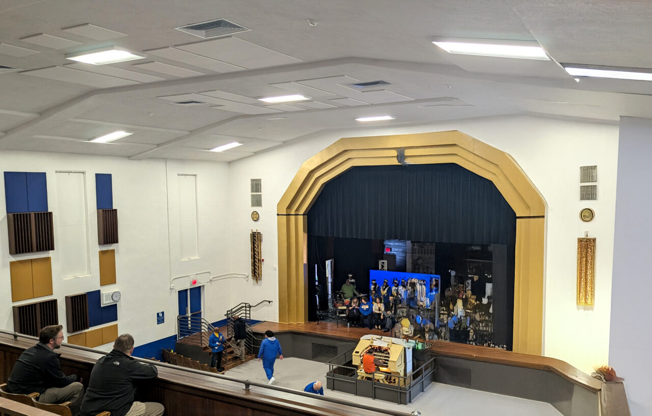 HMC Project Manager Stan Ng detailed the scope of the renovation, which includes new HVAC systems, all necessary interior ducting and wiring, ADA upgrades featuring seating and stage access via a chairlift, contemporary acoustical treatments, a complete refresh of the foyer, new paint everywhere, and careful restoration of the vintage seating.