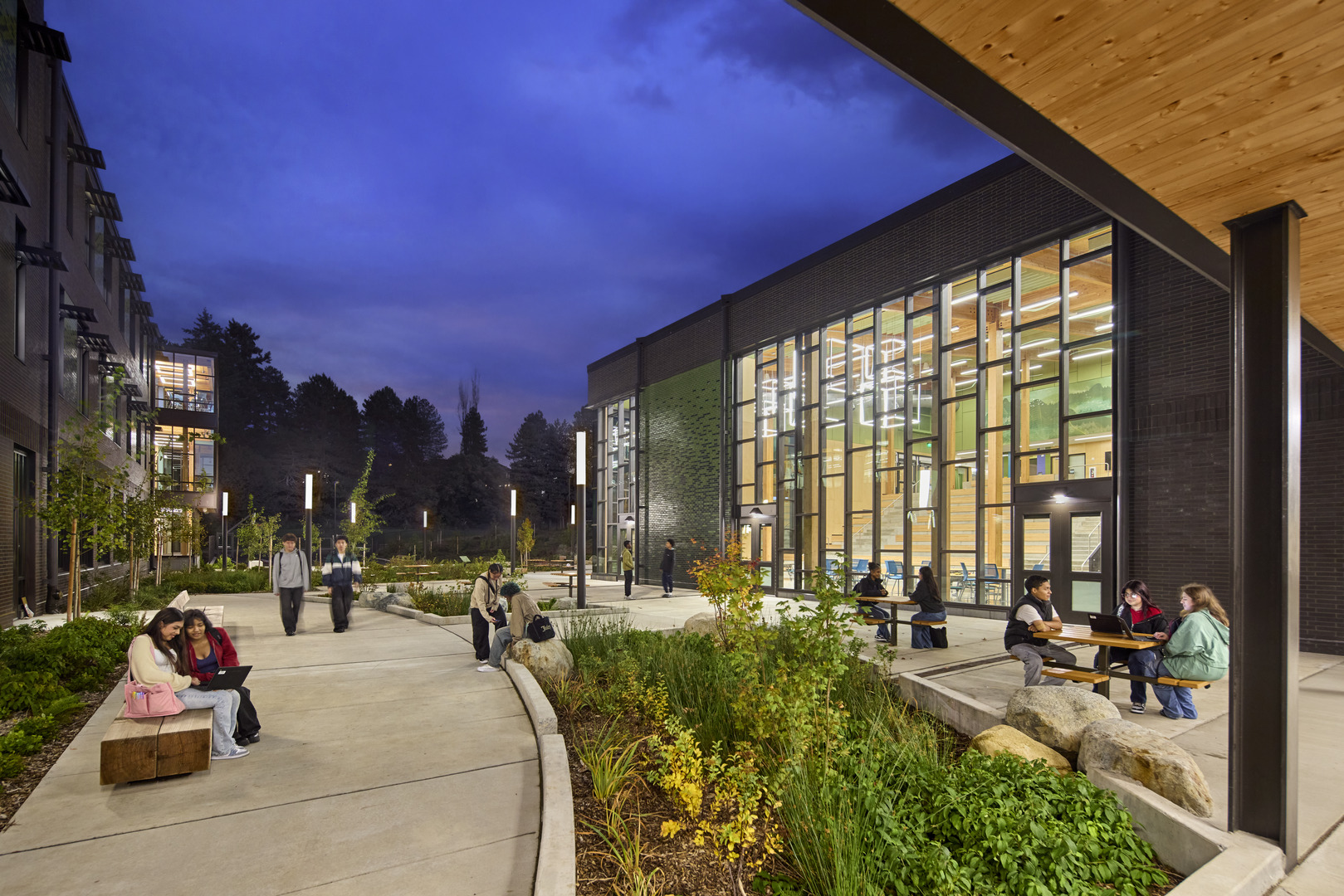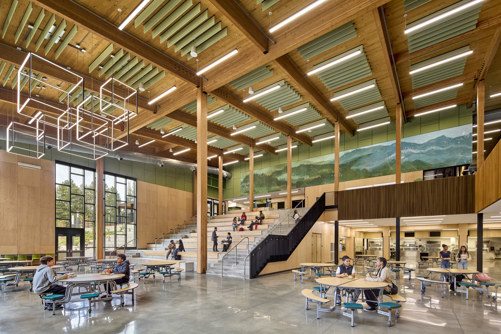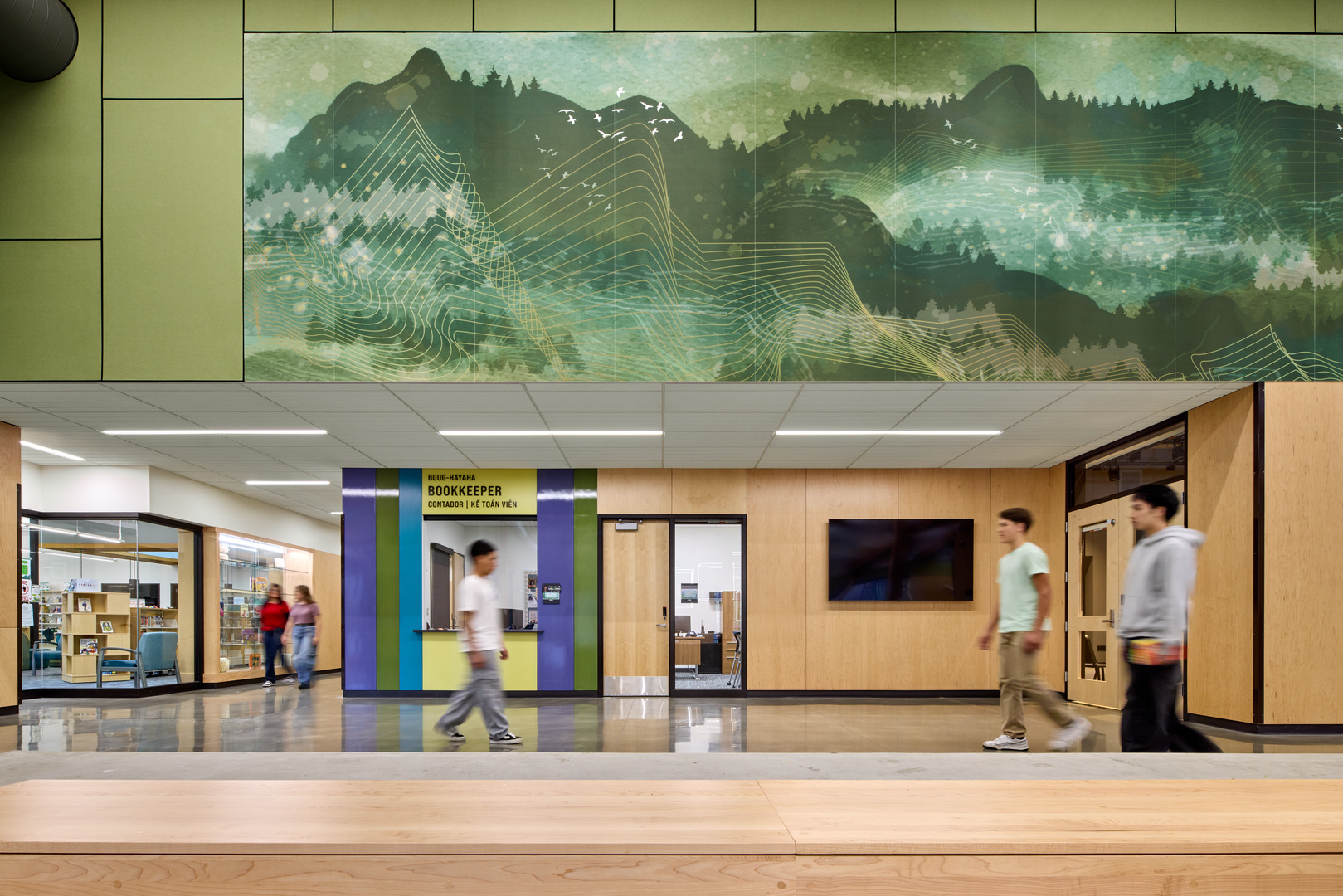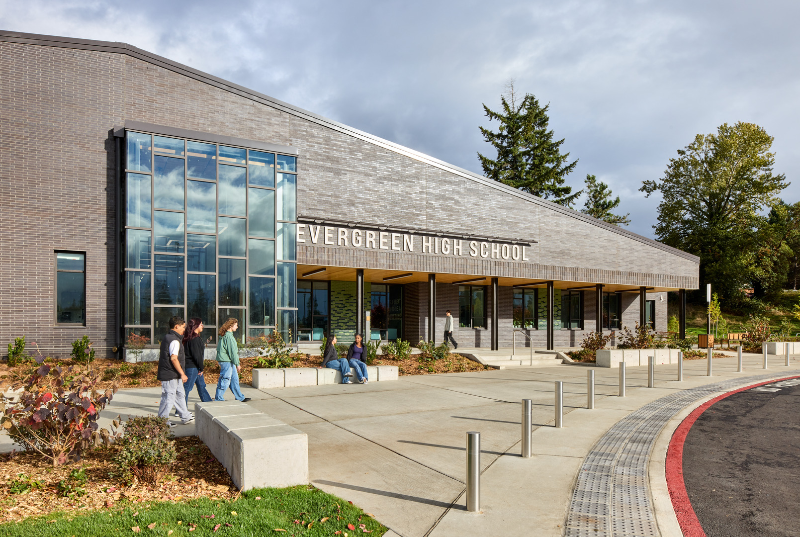 The redevelopment began with an intensive engagement process involving school and community stakeholders. Through tours of exemplar high schools and conversations about learning priorities, the design team gained a clear understanding of how Evergreen could more powerfully support student and community life. The result is a set of guiding goals focused on strengthening the relationship between the campus and its surrounding landscape, creating learning environments that are flexible and future-forward, and fostering a sense of belonging for every student.