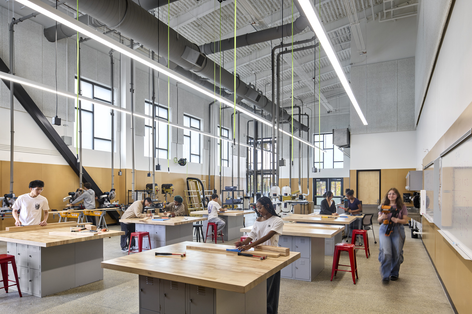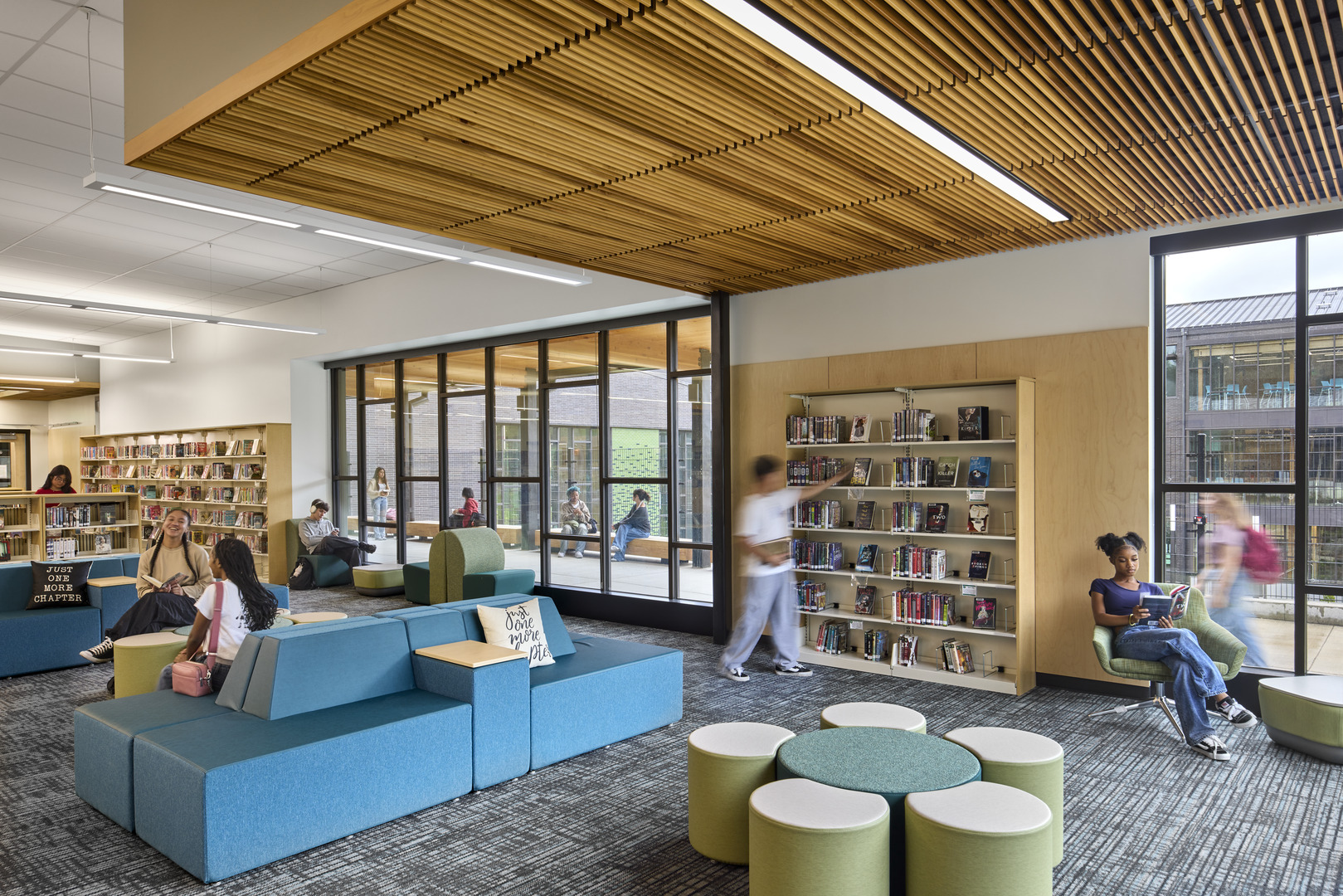 Within the building, light-filled commons areas serve as social and academic anchors with strong indoor–outdoor connections. Quieter pockets offer opportunities for focused work and small-group collaboration. Flexible layouts accommodate evolving curriculum models, ensuring that the school remains adaptable as pedagogies and student needs change. Throughout the campus, visible learning—whether through open classrooms, transparent labs, or dynamic displays—promotes curiosity, exploration, and critical thinking.